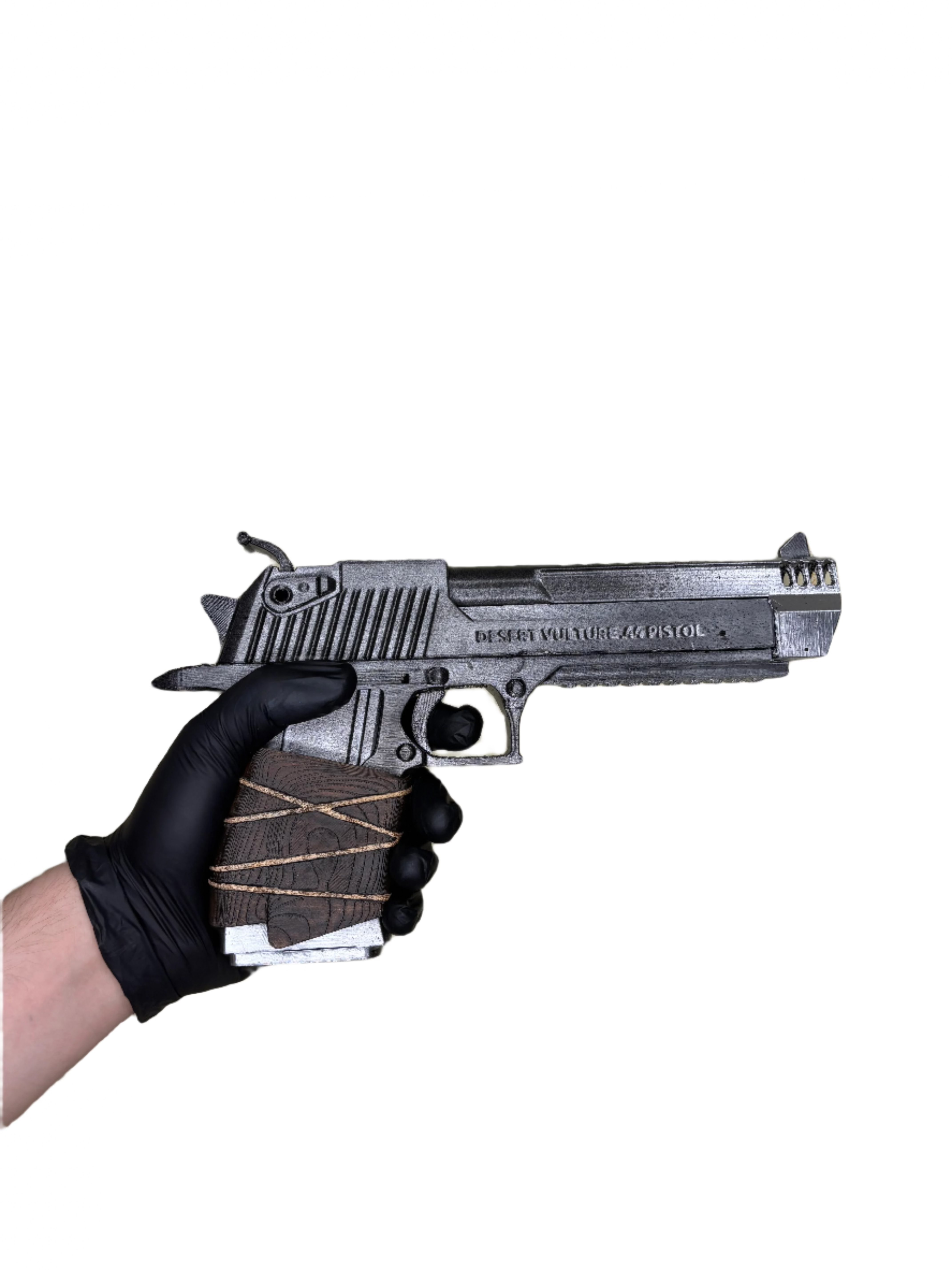 The Desert Vulture is the endgame powerhouse sidearm from 7 Days to Die — a .44-caliber beast that combines hand cannon firepower with a tactical edge. This screen-accurate replica brings that post-apocalyptic punch straight to your collection or cosplay arsenal