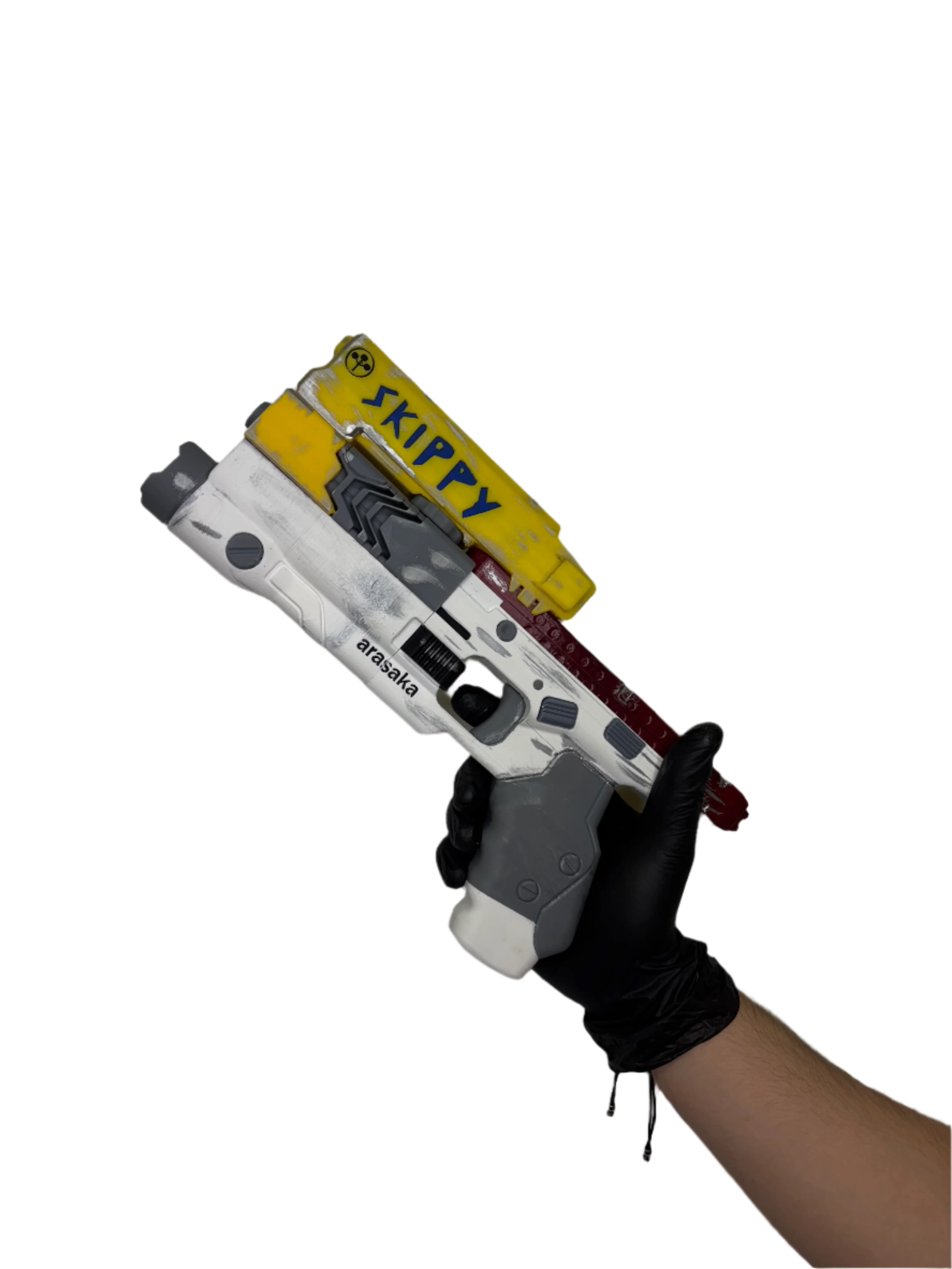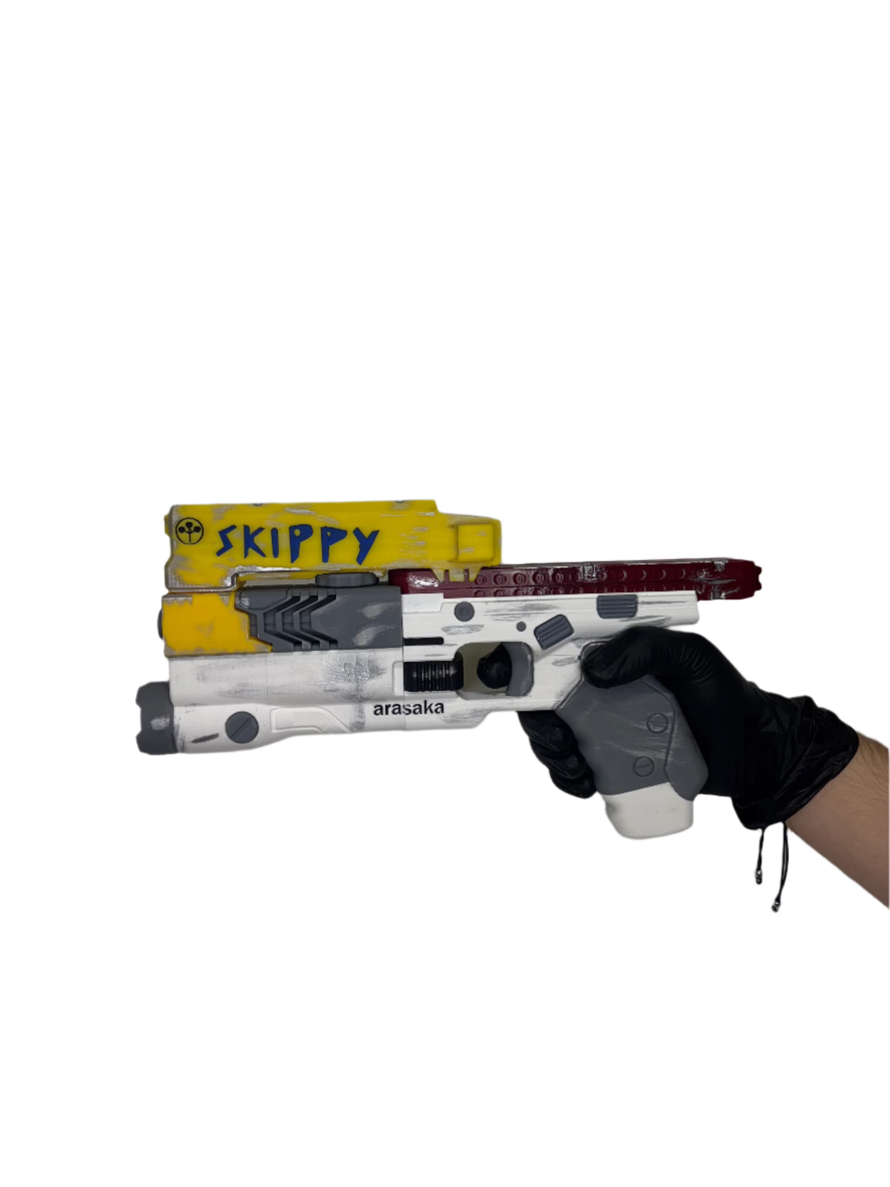 Meet Skippy, the world’s most annoyingly charming (and deadly) smart pistol from Cyberpunk 2077. With its signature talking AI and unforgettable personality, Skippy isn’t just a weapon — it’s a companion. This replica captures every detail of the game’s most iconic handgun, making it the perfect centerpiece for fans of Night City’s chaotic charm