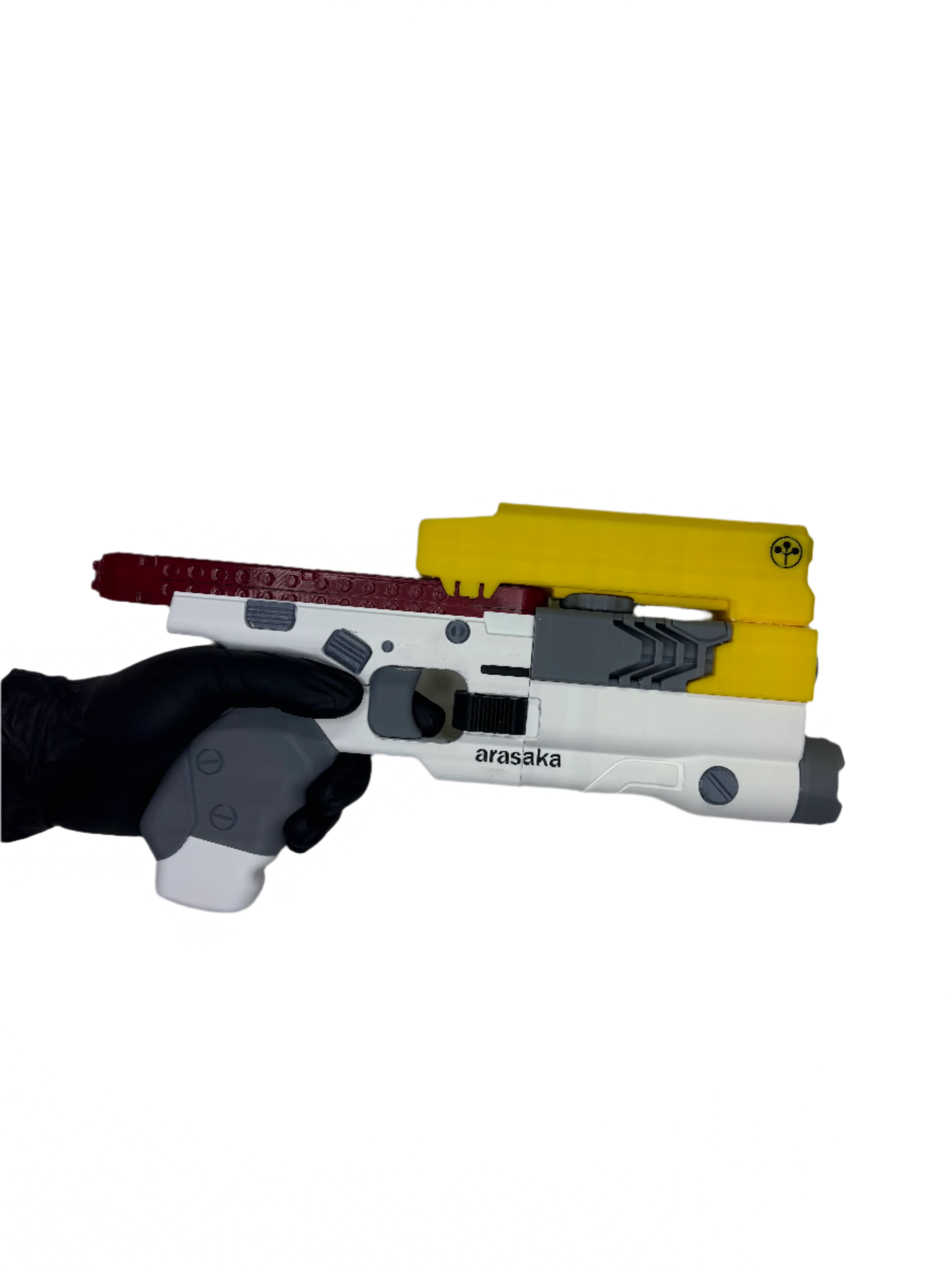 Meet Skippy, the world’s most annoyingly charming (and deadly) smart pistol from Cyberpunk 2077. With its signature talking AI and unforgettable personality, Skippy isn’t just a weapon — it’s a companion. This replica captures every detail of the game’s most iconic handgun, making it the perfect centerpiece for fans of Night City’s chaotic charm